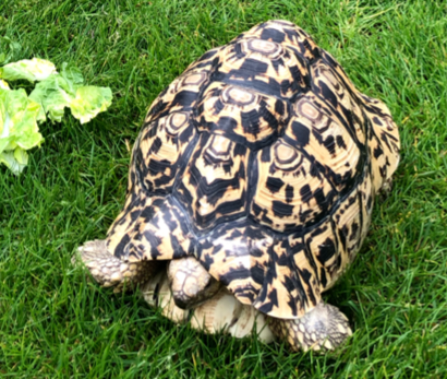 More info: The Stig is a leopard tortoise. He is a highly sociable tortoise, who does well with children and regular handling. With proper care and good health, Leopard tortoises can live 80 to 100+ years in captivity, which would need to be considered by a potential adopter. - More information and images available upon request.