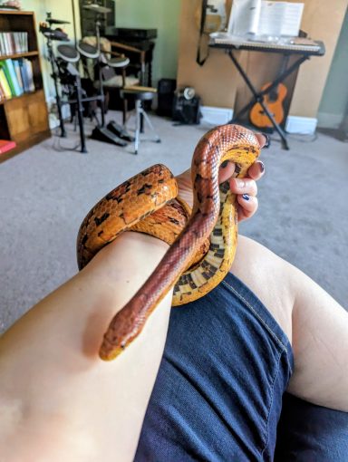 More info: Noodle is a snake that loves to climb, almost as much as she likes her food. Her current owner is relocating, so a new home is needed ASAP. Corn snakes make wonderful starter snakes with the right research and care - more information and images available upon request.